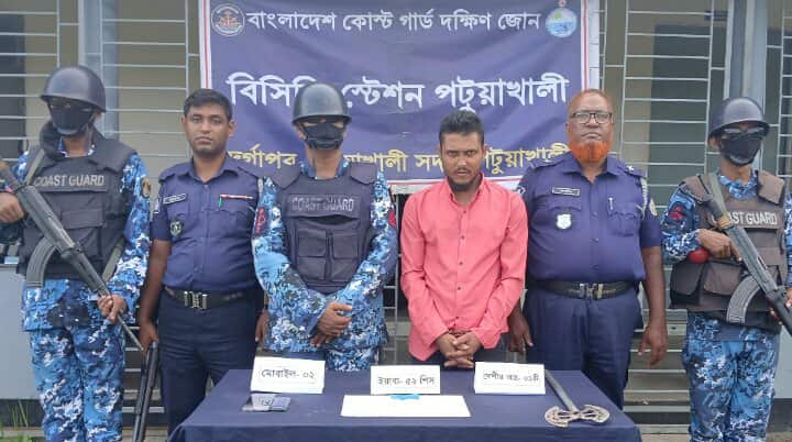 মোঃ গোলাম রাব্বী,স্টাফ রিপোর্টার:- পটুয়াখালীতে ৫২ পিচ ইয়াবাসহ রাসেল ফকির (৩৩) নামের এক মাদক ব্যবসায়ীকে আটক করেছেন কোস্ট গার্ড। সোমবার (৮ সেপ্টেম্বর) রাত ৩টার দিকে পটুয়াখালী সদর উপজেলার শারিকখালি